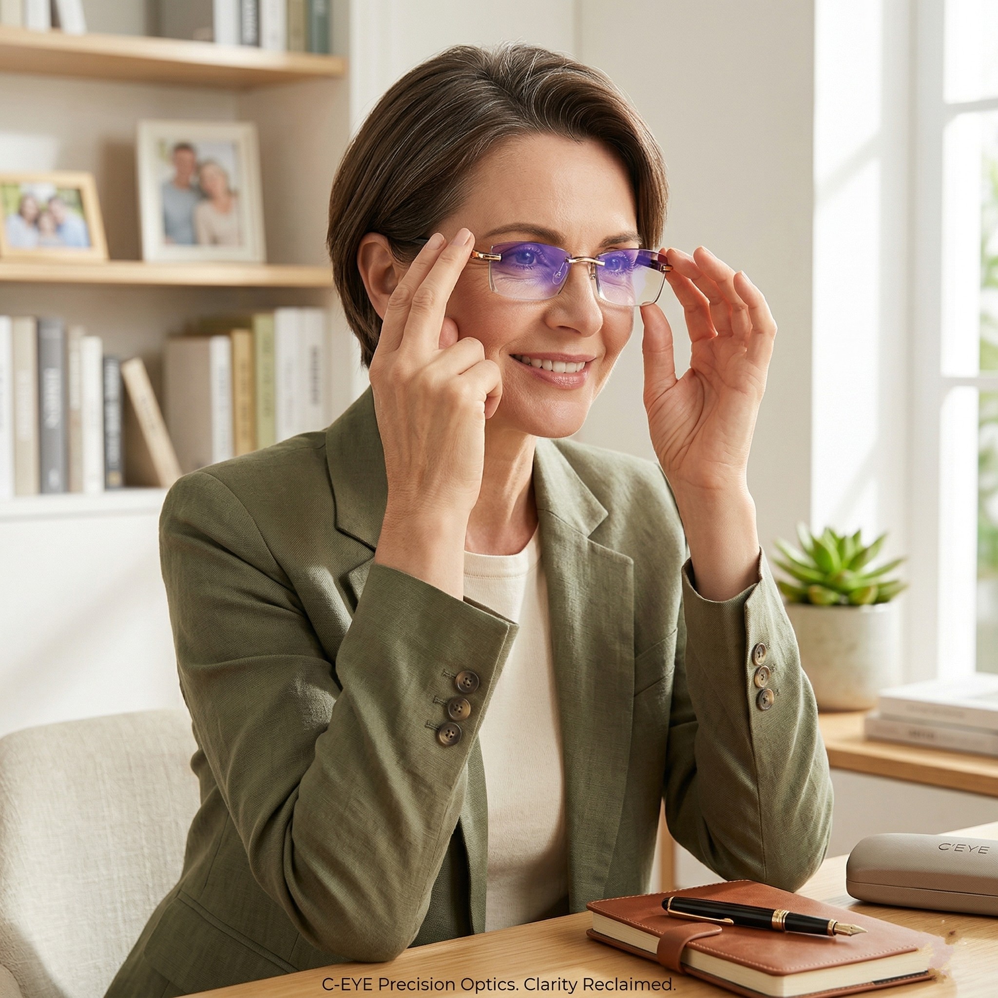 Il design senza montatura valorizza il viso, risulta raffinato e quasi impercettibile una volta indossato, mentre le lenti aiutano a ottenere una visione più chiara e rilassata da vicino e nelle attività di tutti i giorni.